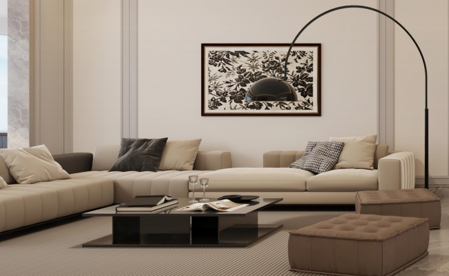 空間以可可蛋奶色系與淺灰為基底,雕花穹頂垂落水晶光瀑。復(fù)式層階以弧形曲線延展,鎏金勾邊如凝固的旋律。巖板樓梯與琺瑯玻璃裝飾對話歲月,古董鏡廊折射流動光影。摒棄浮華堆砌,于凡爾賽式骨架中留呼吸之白,終將古典魂靈凝練為當(dāng)代謐境,成就一處可棲心的精神殿宇。