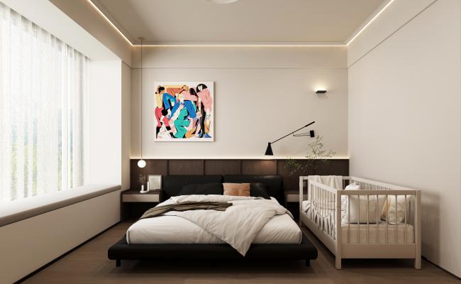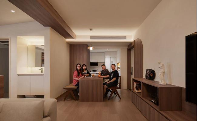 空間以方向作為基本屬性,幾何語言的起點和終點讓視線有所變動。其間的開合、轉折形成空間之間的互動關系,從而影響感知。 設計師以「自然共生」為核心理念,選用天然原木肌理奠定溫潤基調,結合弧形中空天花與流線型穹頂設計,內置隱藏式暖光帶,使光線沿曲面自然流淌,營造出“懸浮月光湖”般的詩意光影。局部點綴綠色巖板,冷冽質感與溫潤木紋形成巧妙對比,在碰撞中達成都市與自然的和諧共生,帶來沉浸式的空間體驗。