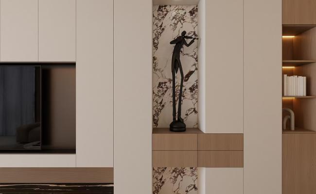 整體設計去客廳化,業主有三只貓,不要布藝皮質家具,收藏很多樂高和盲盒,需要儲物多,希望空間開闊