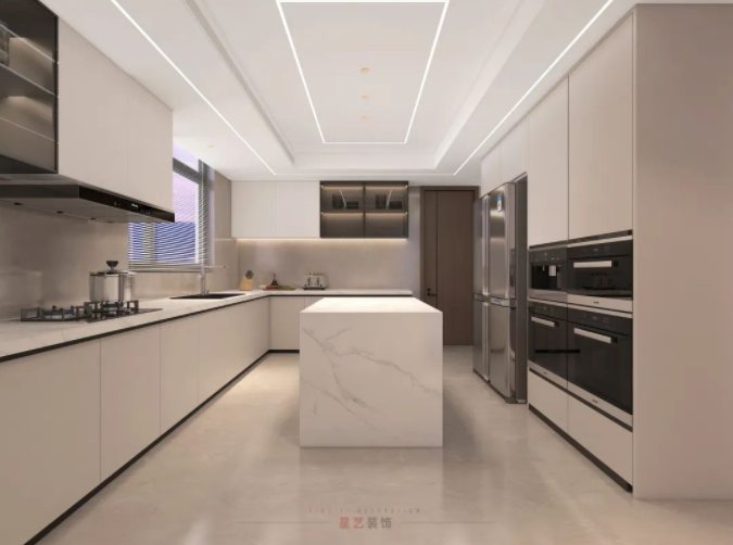 廚房中以線帶面,層次分明,呈現(xiàn)簡(jiǎn)約優(yōu)質(zhì)、低調(diào)有品的家居生活。