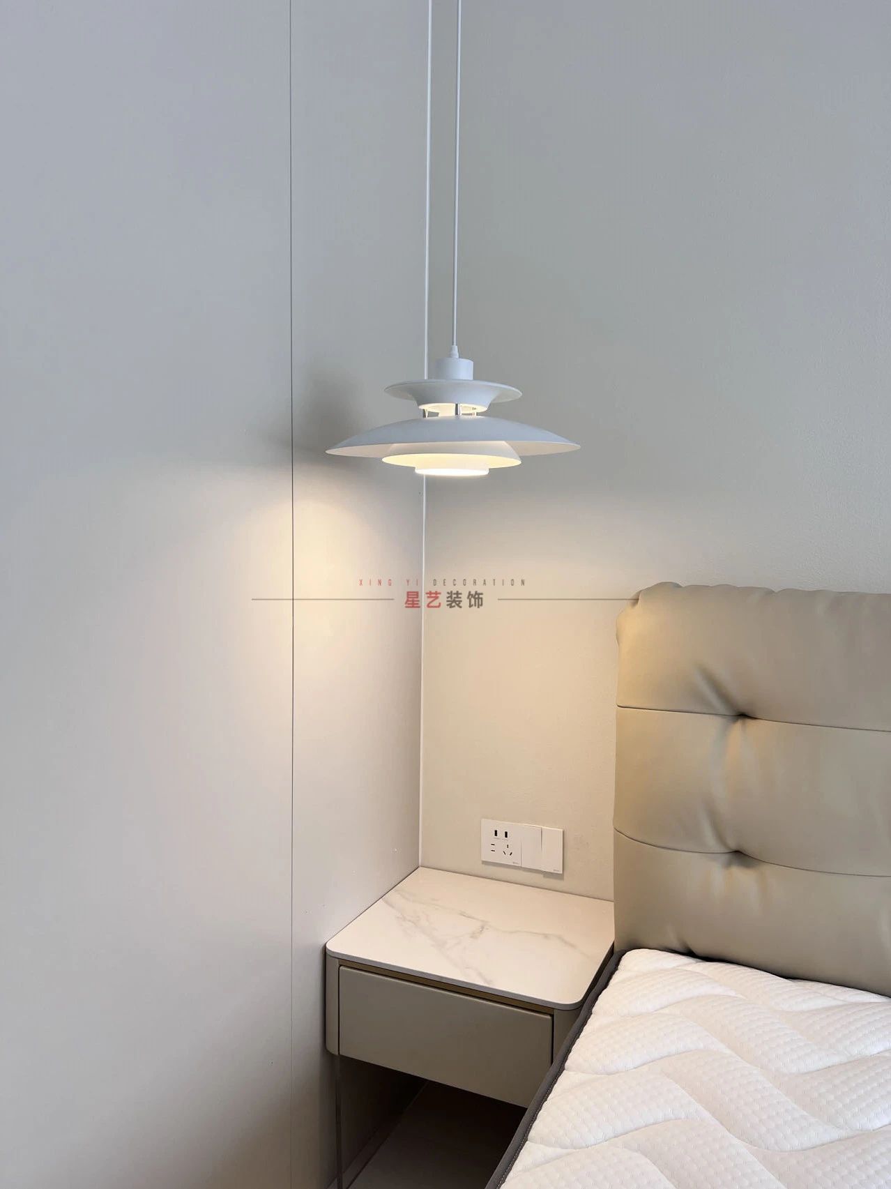 玄關柜上暖黃色的燈,與窗外模糊的暮色形成對比,這是一天最溫柔的時刻,光讓生活浮起來了。