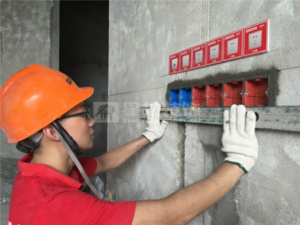 固定底盒時(shí)用水平尺校正,確保底盒水平端正。