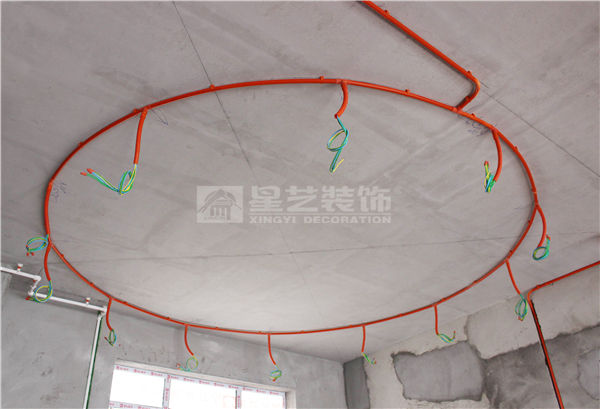 天花出線口左右120mm處各打一個(gè)管卡。目的:管卡固定牢固,后期木工施工時(shí),線管不脫落。